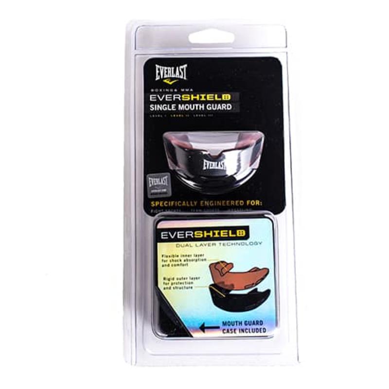 Evershield Single Mouthguard — бюджетная одночелюстная капа, подходящая для тренировок и лёгких спаррингов. Изготовлена с применением двухслойной конструкции — благодаря чередованию жёсткого и пенного материалов обеспечивается надёжная защита от травм челюсти или головы. Капа термопластична и после варки приобретает индивидуальную, анатомически выверенную форму В комплект покупки входит стерильный кейс для хранения.