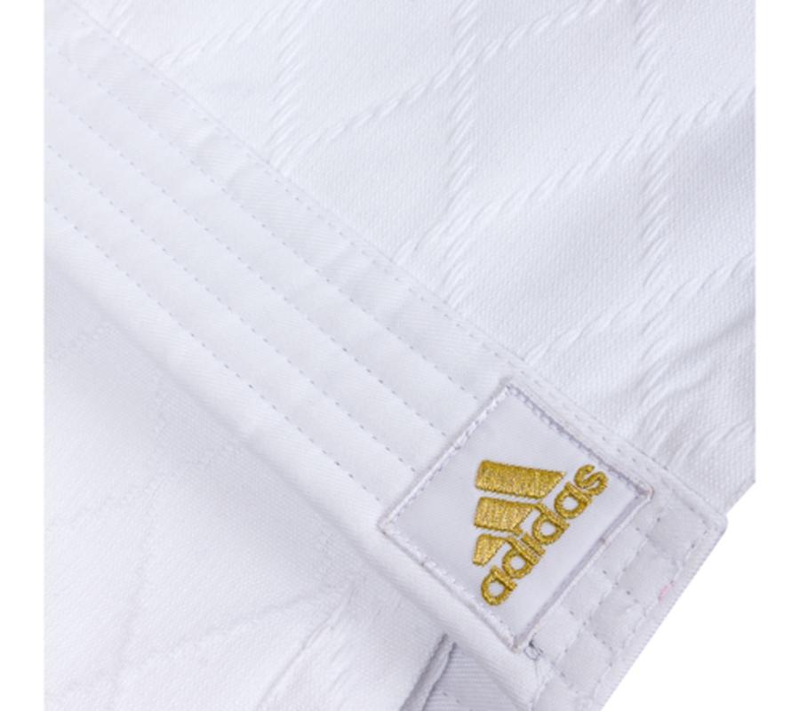 Одно из наиболее продаваемых кимоно для дзюдо. Сделано из плотного, мягкого материала, плотностью 650 g/m2. Кимоно из комбинации смеси полиэстера и хлопока, хлопковые волокна путем укрепления полиэфирными нитями увеличивает свою прочность на растяжение, и долговечность в использовании, а так же позволяет выводит наружу повышенную влажность. Дзюдога с тремя полосами на плечах и логотипом adidas. Рекомендуется как для профессиональных спортсменов, так и для юниоров.
