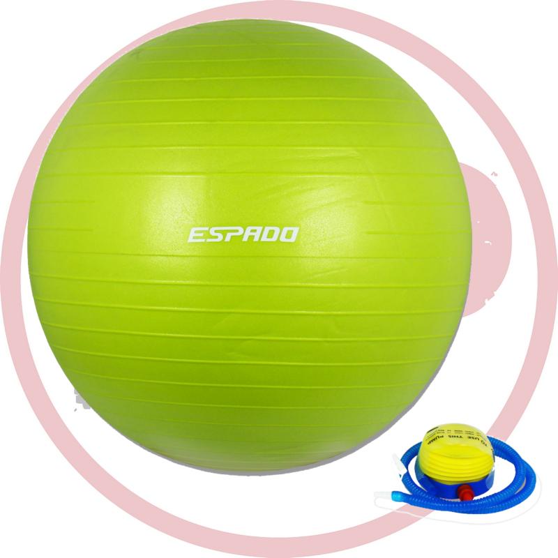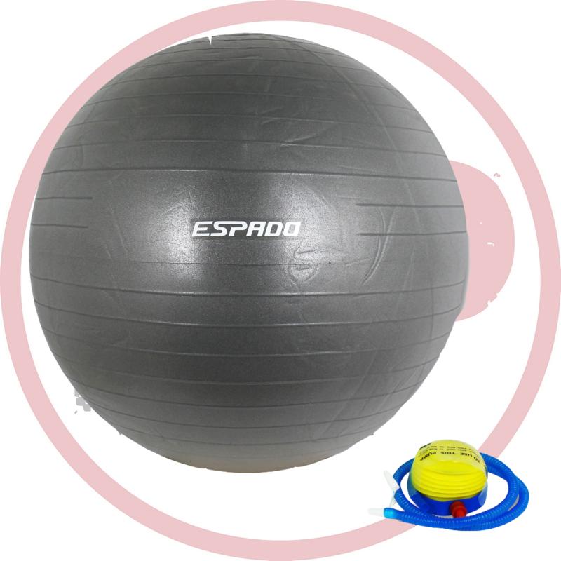 Мяч гимнастический ESPADO. Тренирует правильную осанку, чувство естественной координации тела, улучшает работу вестибулярного аппарата, уменьшает нагрузку на связки, суставы, межпозвоночные диски. Перераспределяет тонус всех групп мышц, одновременно тренирует мышцы рук и ног, спины, пресса, ягодиц. Занятия с мячом дают уникальную возможность воздействовать не только на мышцы, которые участвуют в "обычных" движениях, но и глубокие мышечные структуры, позволяющие выполнять сложнокоординированные движения. Мячи для фитнеса могут использоваться людьми всех возрастов в спортзале и дома. Диаметр 55, 65, 75 см.  Система антивзрыв. Максимальная нагрузка до 120 кг. Индивидуальная, красочная упаковка (коробка) и насос в комплекте.