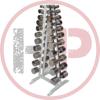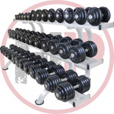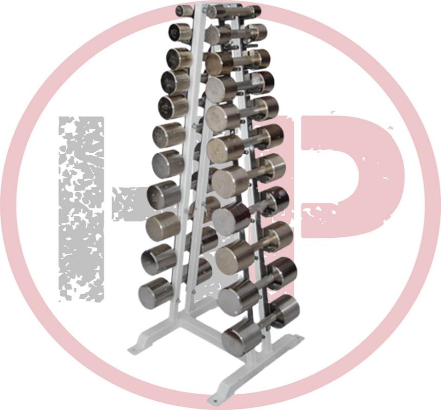 Гантельный ряд состоит из 12-ти пар хромированных гантелей: 2 гантели по 2 кг, 2*3, 2*4, 2*5, 2*6, 2*7, 2*8, 2*9, 2*10, 2*12, 2*14, 2*16кг расположенных на Л-образном стеллаже.