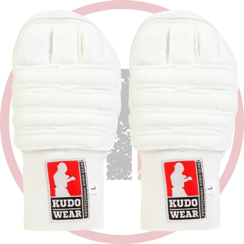 Накладки на руки – важнейший элемент экипировки, который защитит Ваши руки от травм и повреждений. Необходимы для участия в соревнованиях любого уровня. Эластичная перчатка с защитной войлочной накладкой защищает руку от ссадин при попадании в твердую часть шлема. Используются только в сочетании с бинтами. Одобрено Федерацией кудо России для выступления на соревнованиях.