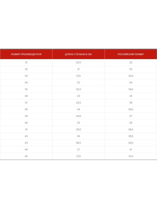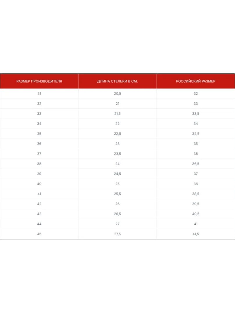 • Таблица размеров
