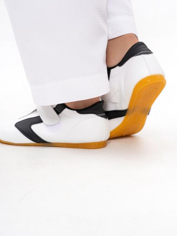 • Специальная подошва обеспечивает отличное сцепление с поверхностью, что минимизирует риск скольжения и травм. Легкость и гибкость обуви способствуют свободе движений, что особенно важно для выполнения сложных элементов в тхэквондо и других боевых искусствах.