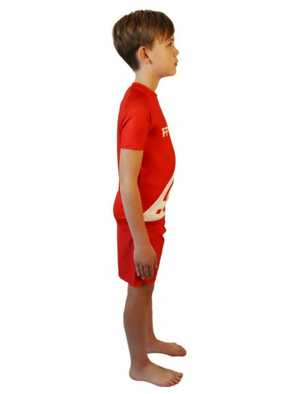 Представленный рашгард доступен в ярком красном цвете с контрастными элементами, что делает его стильным выбором для мужчин и подростков, стремящихся выделиться на тренировках.