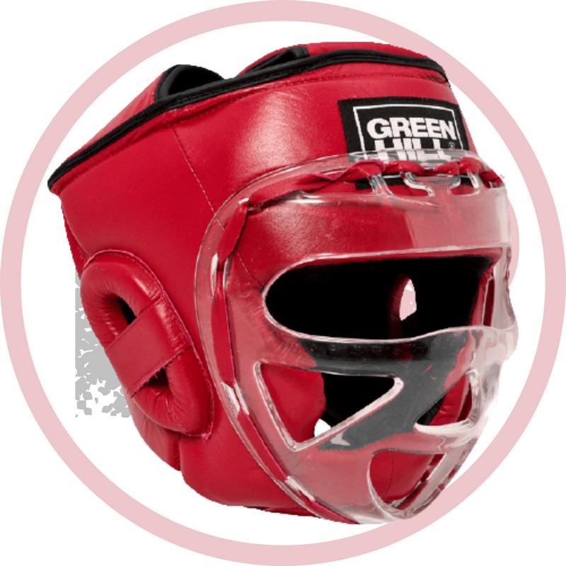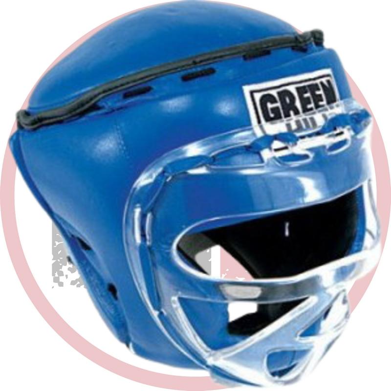 Тренировочный и соревновательный шлем RING - это уникальное предложение на рынке. Особенностью данного шлема является полностью закрытый, с помощью плотной крышки, верх, что обезопасит спортсмена от ударов локтем или пяткой сверху. Прозрачная маска шлема обеспечивает защиту лица, сохраняя при этом отличную видимость. Шлем выполнен из высококачественной коровьей кожи.  Шлем фиксируется «липучкой». Обеспечивает лучшую защиту из всех существующих моделей.