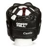 Боксёрский шлем CASTLE предназначен для тренировок по боксу. "Бампер" из пластика обеспечивает максимальную защиту лица от ссадин и рассечений в области глаз, носа и бровей. Шлем выполнен из искусственной кожи. Внутренняя поверхность из искусственной замши AMARA. Подбородок открыт.Фиксация на липучке в затылочной части. Подгонка с помощью шнурков в верхней части шлема.