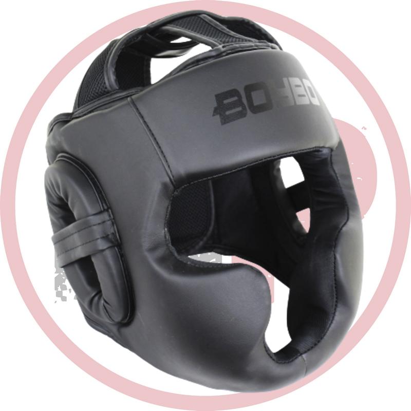 Тренировочный шлем BoyBo Black Edition сочетает в себе отличную защиту, благодаря основе из вспененного материала, предохраняющей подбородок и лицевые кости и эффектный внешний вид, полностью чёрный шлем с матовым нанесением рисунка.