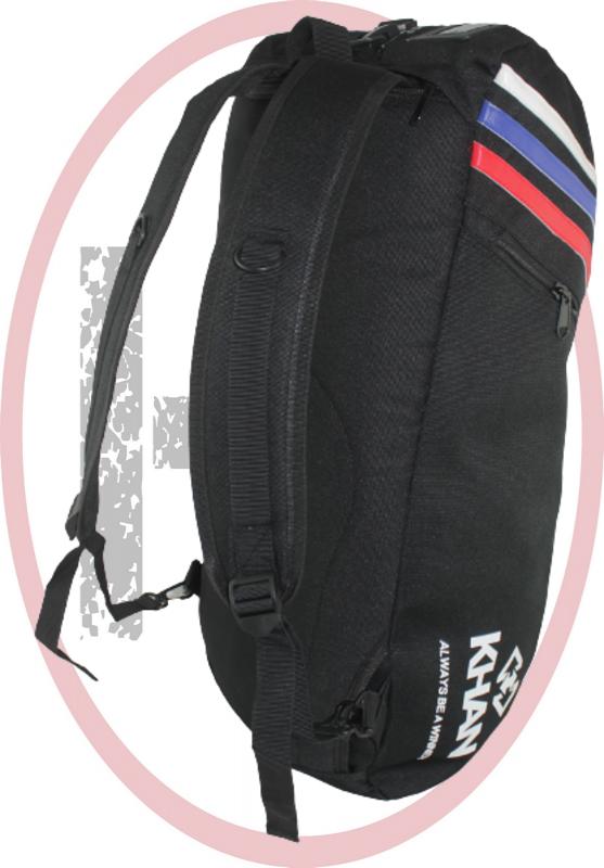 Сумка-рюкзак трансформер Khan Тхэквондо. Сумка сделана по бестселлеру продаж, трансформируется из спортивной сумки в рюкзак за 2 минуты, вы можете носить ее на плече , в руках, как рюкзак. Размер сумки позволяет вместить в неё всю необходимую амуницию для тренировок.