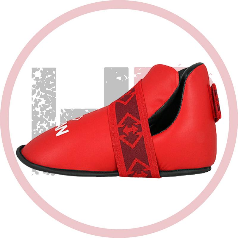 Защита стопы — ITF Expert KHAN - это защита, предназначенная для спортсменов по Тхэквондо Версии ИТФ. Это качественные и прочные футы для тренировок и соревнований. Крой предусматривает закрытые пятки и пальцы, а также полное отсутствие подошв. Вместо них имеются по 2 резинки: для пятки и пальцев. Внешний материал футов отлично держит продолжительную эксплуатацию и не теряет привлекательного внешнего вида. Внутренний наполнитель – пенополиуретан. Он отлично поглощает удары и эффективно смягчает их. Защита крепится к стопе длинной эластичной резинкой с застёжкой на липучке.